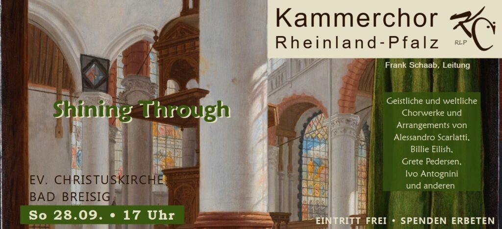 Der 2010 gegründete Kammerchor Rheinland-Pfalz steht für ein breites und vielseitiges Repertoire sowie für eine rege Konzerttätigkeit über die Landesgrenzen hinaus. Ob fulminantes Oratorium mit Orchesterbegleitung oder filigraner A-cappella-Klang, das Ensemble begeistert sich für jede musikalische Epoche und Stilrichtung.